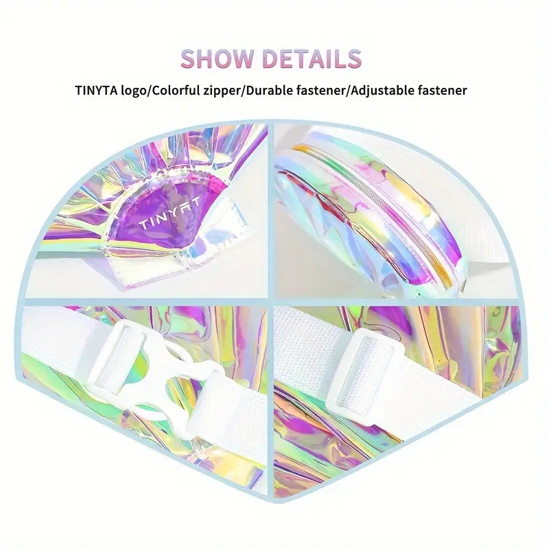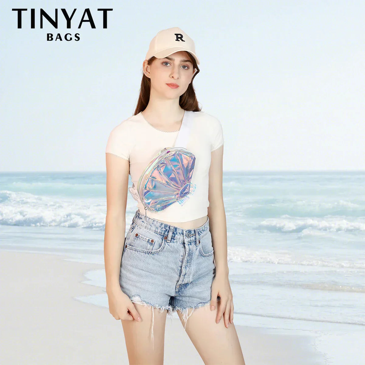 The Piper Holographic Shell-Shaped Crossbody Hip Bag is a striking and playful accessory that adds a unique touch to any outfit. With its holographic shine and shell shape, this bag is perfect for festivals, parties, or a casual outing.